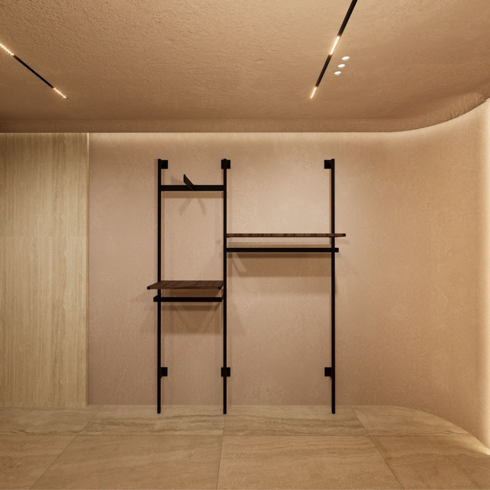 Este Montante metálico para tiendas Presenta un acabado negro mate, con un diseño simple y moderno. Perfecto para decorar tu showroom o un walk-in closet con estilo y sencillez. Basta con añadir un toque de color a las paredes de la estancia para convertirla en un ambiente único y original. También es ideal para decorar una entrada o una estantería abierta.