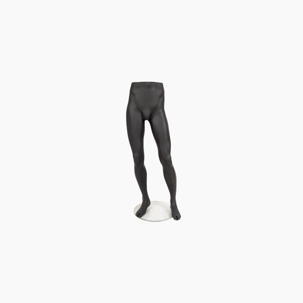 Questo manichino che raffigura un paio di gambe maschili è un oggetto specifico per l'esposizione di abbigliamento maschile. E' realizzato in vetroresina di colore nero opaco, ultraleggera e resistente agli urti; inoltre presenta un'elegante e resistente base circolare in cristallo.